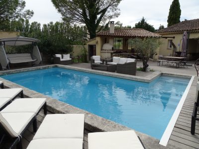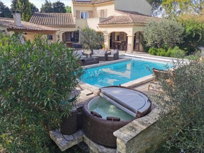 Mas provencal 20 couchages + Studio , entierement refait, CA : 90 K€ / an Gîte et chambres d’hôtes à vendre à Althen-des-Paluds sur la commune de ALTHEN DES PALUDS, cette très belle villa familiale,ou idéal investisseur avec une très bonne rentabilité , de 335 m² implantés sur un beau terrain arboré de pins et d’oliviers ( arrosage automatique sur forage) d’une surface de 2000m². Elle vous offrira, un très vaste espace de vie avec un beau séjour et d’une cuisine équipée totalisant 65m² de surface, donnant accès à une terrasse de 110m2 exposée sud. La suite du rez-de-chaussée se compose de deux chambres, d’une élégante salle de bain et d’une blanchisserie de 28m2 ( aménageable en piece à vivre ). Au niveau supérieur, vous retrouverez un grand espace nuit composé d’une mezzanine, de 2 chambres d’environ 17m2 avec un accès sur la terrasse tropézienne et d’une suite parentale de 35m² avec jacuzzi et cabine sauna/hammam. L’extérieur vous séduira par son environnement calme et sans vis-à-vis,ombragée de grands pins, vous permettant de profiter de cet espace convivial composé d’un joli coin cuisine avec four à pizza, ainsi que d’un brasero/barbecue ouvert sur une très belle piscine chauffée et couverte, disposant d’un remplissage automatique avec margelles en pierre d’estaillade accompagnée d’un espace jacuzzi. Deux dépendances viennent compléter cet ensemble, ainsi que d’une deuxième piscine balnéo. De nombreuses surprises vous attendent ! Prix de vente : 735000 €
