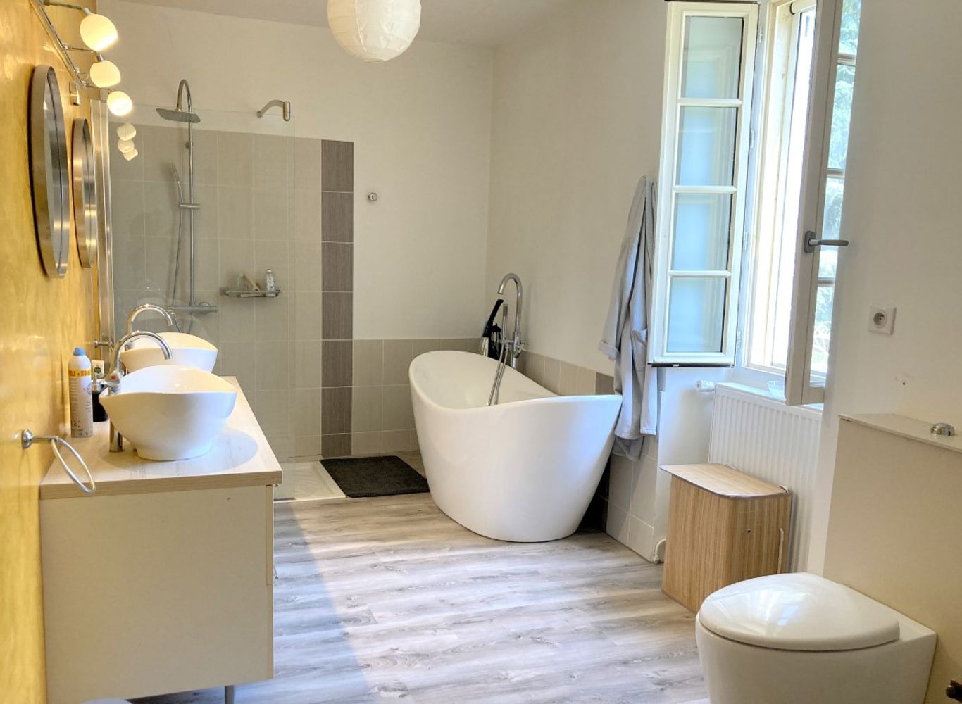 À céder ensemble immobilier touristique de charme situé dans la vallée du Lot, comprenant deux gîtes indépendants exploités, sur un terrain arboré de près de 8 500 m².