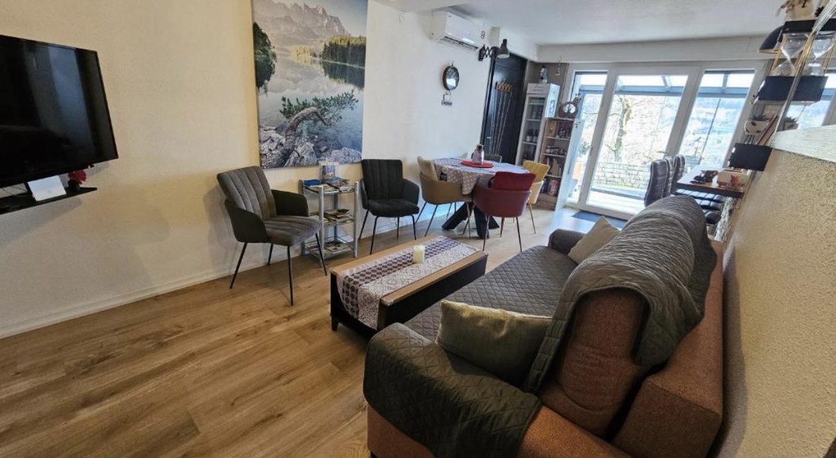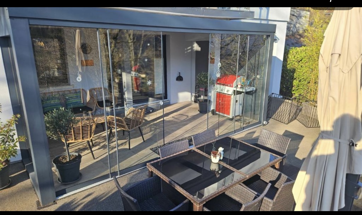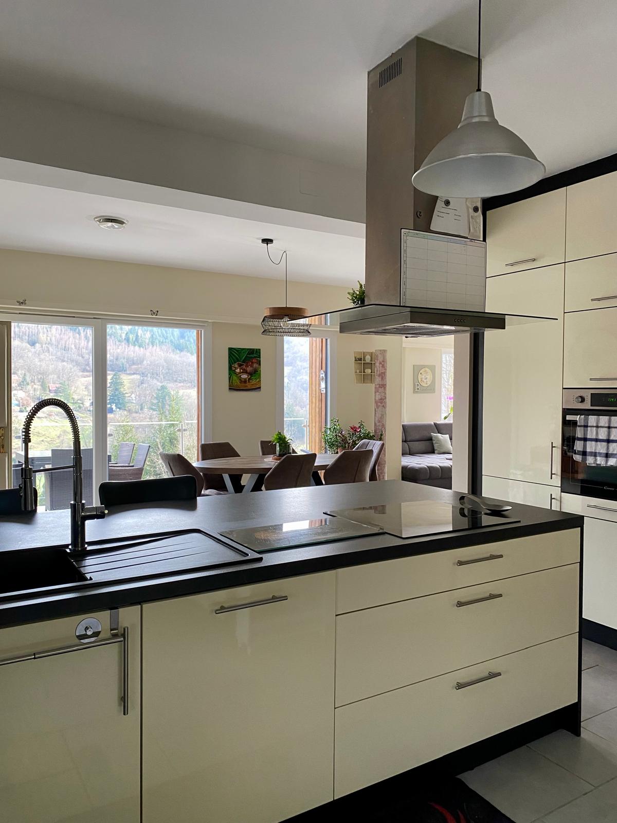 La surface du terrain est de 2300 m². En position dominante, sans vis-à-vis, avec vue sur les montagnes et le Grand Ballon. Un grand espace clôturé pour les animaux, un potager en cascade, le tout paysagé. Un garage pour deux véhicules, un parking pour quatre voitures, tout-à-l’égout. La maison, sur deux étages avec ascenseur, a été entièrement rénovée. Double vitrage, climatisation réversible dans chaque pièce. Ballon d’eau chaude thermodynamique, cheminée à l’étage, combles isolés, toiture traitée et parties inférieures isolées. Elle possède deux grandes terrasses, deux vérandas et un grand balcon en L. Deux cuisines entièrement équipées, deux salons/salles à manger, deux buanderies, quatre chambres avec chacune sa salle d’eau, quatre toilettes séparées et une petite épicerie.