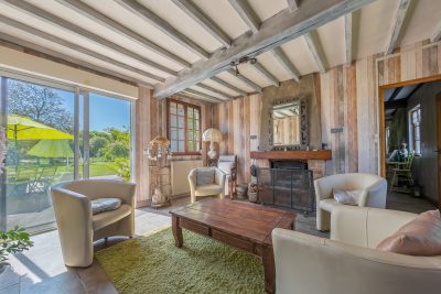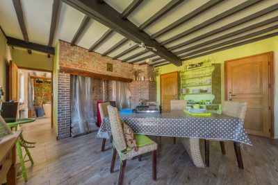 Grand gîte rural dans baie de Somme : belle longère fin XIXème entièrement rénovée (320 m²) 15 pièces dont huit chambres avec spa et hammam sur un terrain arboré de 6000 m². VRON (80) – Belle longère fin XIXème entièrement rénovée composée de trois gîtes exploités en SARL et un appartement de fonction soit 320 m² habitables avec SPA et HAMMAM sur terrain arboré de 6000 m² en lisière du Parc du Château de Régnières-Ecluses avec deux grandes terrasses, triple garage et dépendances dont cave voûtée – Chauffage central fuel, cheminées bois et poêle à pellets. Chiffre d’affaires annuel : 63 000 euros. Bénéfice annuel : 41 000 €