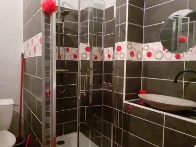 -1 studio/rue de 32 m² : salle de séjour avec kitchenette équipée, hall, salle d’eau (douche)+WC