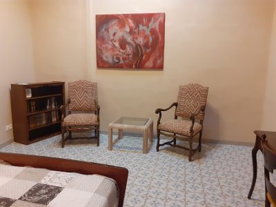 – 1 appartement traversant de 90m² (duplex possible avec la chambre du second étage), salle de séjour+cuisine équipée, 2 chambres, salle d’eau (douche)+WC