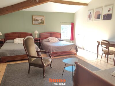 Ensemble immobilier composé d’une habitation principale de 400m² environ avec partie privative indépendante et 5 chambres d’hôtes ainsi que deux gîtes de 77 et 40 m2.
