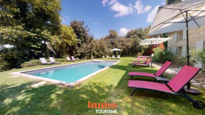 Le jardin : Un cadre naturel enchanteur composé de végétation méditerranéenne avec des arbres chargés d’histoire. Une très belle piscine pour se rafraîchir durant les chaudes journées d’été. Des espaces ombragés et des coins détente pour vos invités.