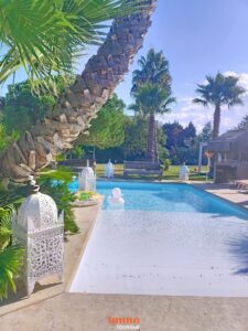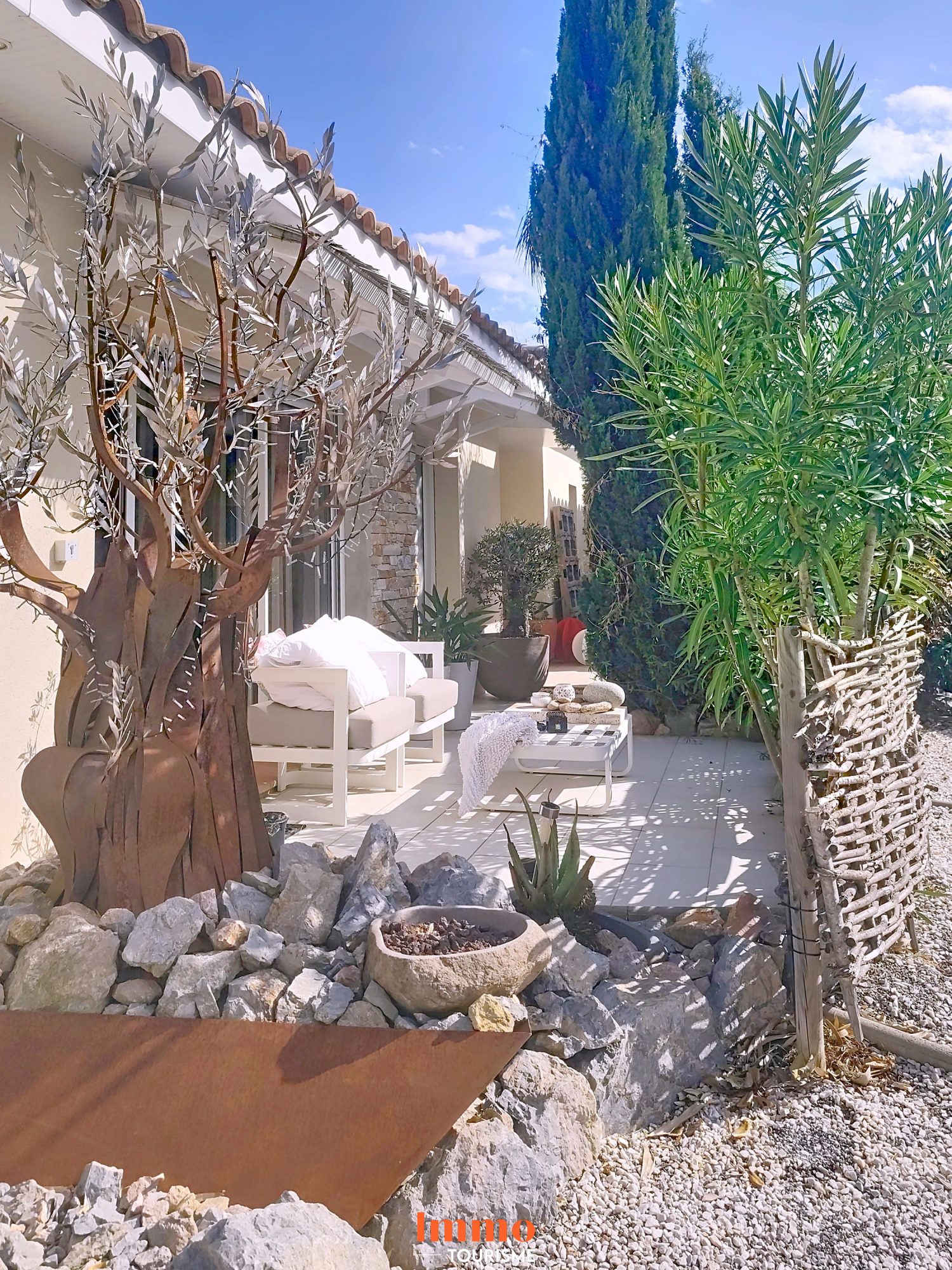 À l’extérieur, le jardin méditerranéen propose une piscine plein sud, un jacuzzi, une cuisine d’été avec bar, un espace soins et massages, ainsi que de vastes terrasses dans un cadre verdoyant, intime et sans vis-à-vis.