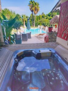 Prestations de loisirs : piscine, spas, jacuzzi, sauna, salle de cinéma, espace massage.