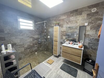 Située au coeur du village de grand coude cette belle villa édifiée sur un terrain d’environ 1700 m2 propose tous les avantages d’un investissement en vue d’une activité type maison d’hôtes ,Gîte ,meublé de tourisme . La villa en elle même comprend 4 belles chambres ,un grand séjour et surtout une grande cuisine de 30 m2 pouvant servir de lieu de restauration en commun . Cette propriété offre toutes les caractéristiques nécéssaires à ce type d’activité . On note entre autre : une dépendance équipée en chalet sanitaire pouvant notamment être agrandie en vue de créer une chambre supplémentaire ; un coin pour cuisine au feu de bois ; un grand terrain arboré où il est possible de construire 3 ou 4 chambres indépendantes ; une magnifique terrasse avec vue sur la montagne ,un grand espace parking . A noter également que grand coude est un village typique des hauts de la Réunion proposant notamment plusieurs sentiers de randonnée ,un bassin naturel et plusieurs jardins botaniques .